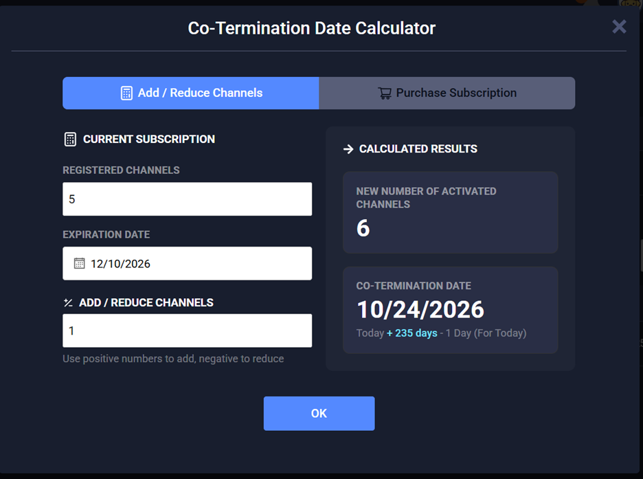 A new Co-Term Calculator has been added to the Subscription page to provide visibility into how co-term subscription expiration dates are calculated.